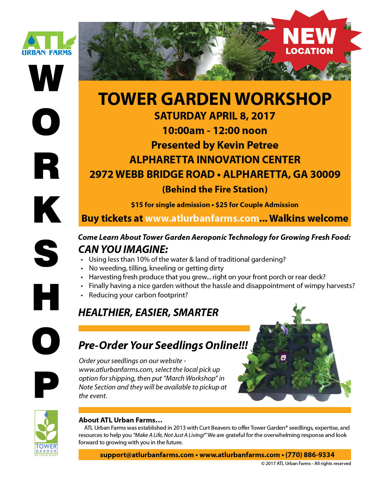 ATL Urban Farms is offering a workshop for you to learn all you need to know to be successful in growing fresh fruits and vegetables in a very limited space with. Custom delivery can be arranged by calling Mona Hitch at 615-429-MONA 6662. We ship to the lower 48 states of the USA.