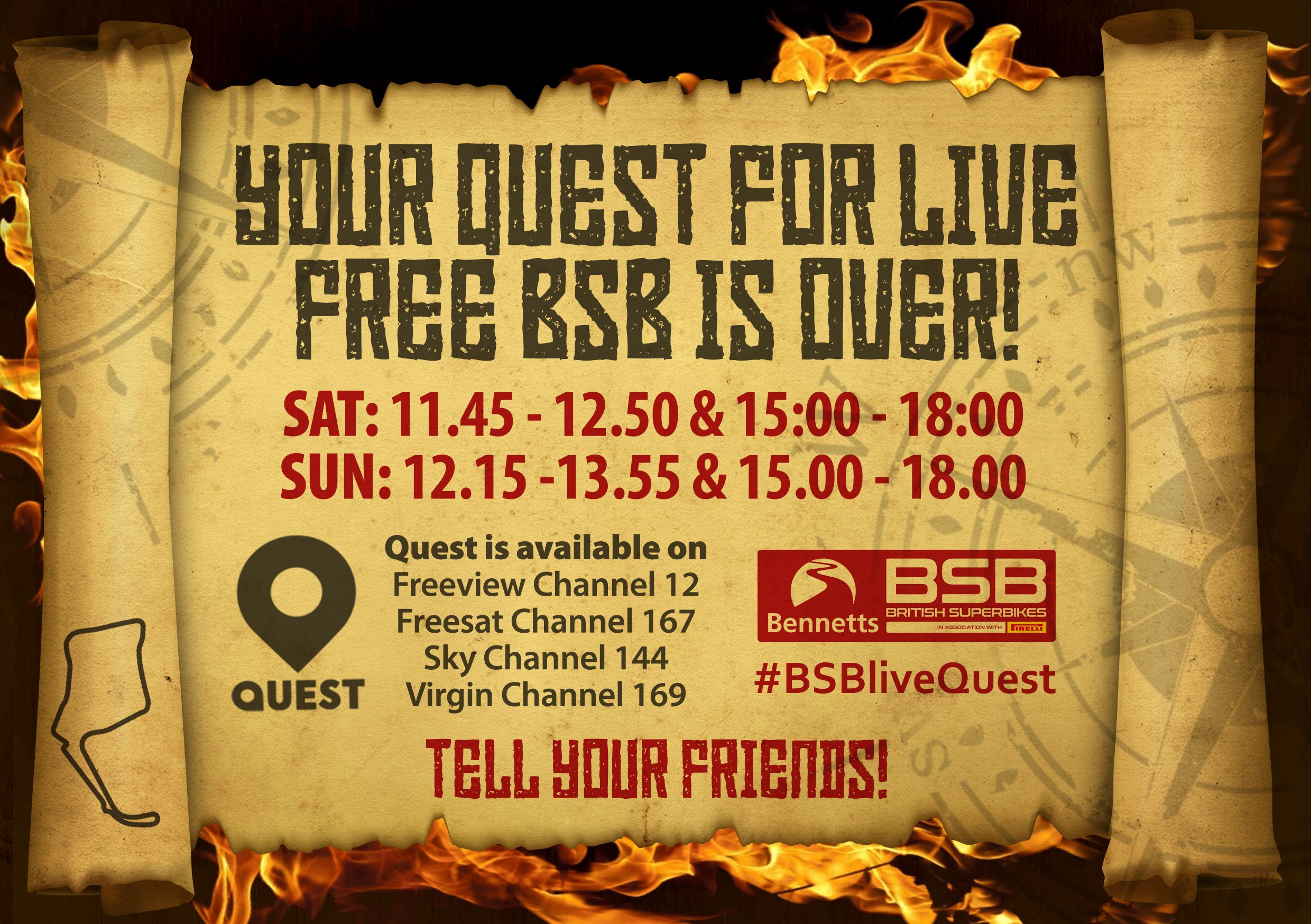 Bennetts British Superbike Championship On Twitter Public Service Announcement Your Quest Change Channel Live Bennetts Bike Bsb For Free Oulton Park This Weekend Live On Questtv Bsblivequest Tellyourfriends Https T Co Rtuniiwizv